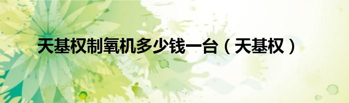 关于天基权制氧机多少钱一台,天基权这个很多人还不知道,今天菲菲来为大家解答以上的问题,现在让我们一起来看看吧!
