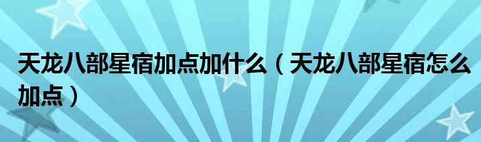 天龙八部星宿加点加什么(天龙八部星宿怎么加点)