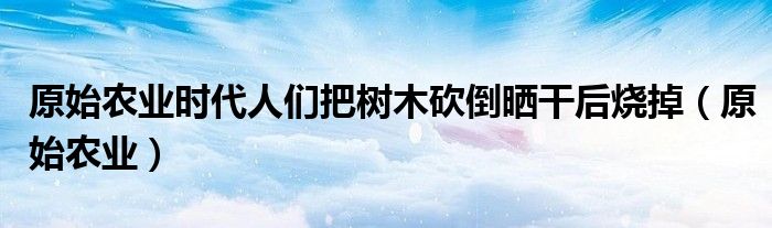 关于原始农业时代人们把树木砍倒晒干后烧掉,原始农业这个很多人还不知道,今天菲菲来为大家解答以上的问题,现在让我们一起来看看吧!