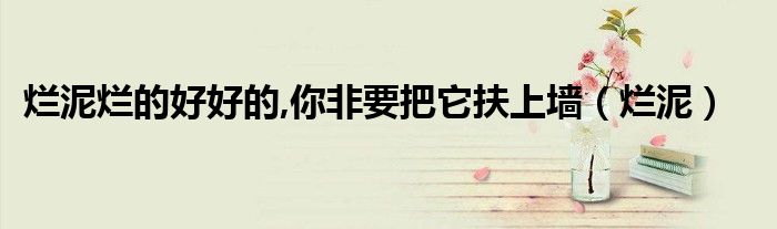 关于烂泥烂的好好的,你非要把它扶上墙,烂泥这个很多人还不知道,今天菲菲来为大家解答以上的问题,现在让我们一起来看看吧!