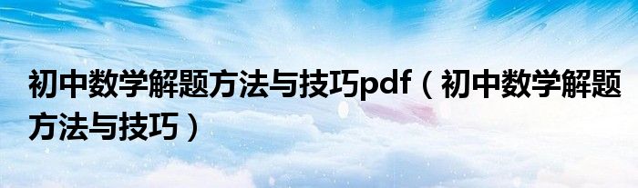 关于初中数学解题方法与技巧pdf,初中数学解题方法与技巧这个很多人还不知道,今天菲菲来为大家解答以上的问题,现在让我们一起来看看吧!