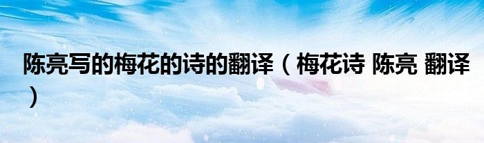 关于陈亮写的梅花的诗的翻译,梅花诗 陈亮 翻译这个很多人还不知道,今天菲菲来为大家解答以上的问题,现在让我们一起来看看吧!