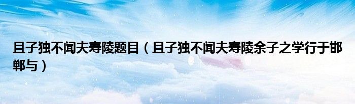 关于且子独不闻夫寿陵题目,且子独不闻夫寿陵余子之学行于邯郸与这个很多人还不知道,今天菲菲来为大家解答以上的问题,现在让我们一起来看看吧!