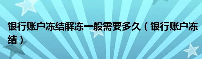 关于银行账户冻结解冻一般需要多久,银行账户冻结这个很多人还不知道,今天菲菲来为大家解答以上的问题,现在让我们一起来看看吧!