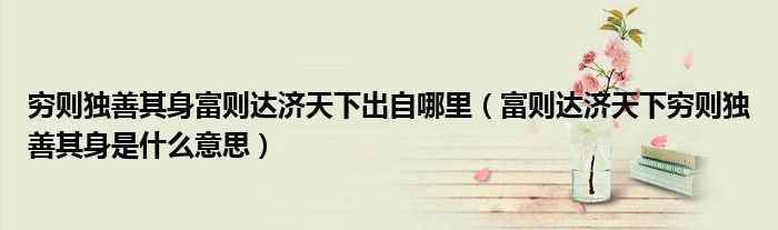 关于穷则独善其身富则达济天下出自哪里,富则达济天下穷则独善其身是什么意思这个很多人还不知道,今天菲菲来为大家解答以上的问题,现在让我们一起来看看吧!