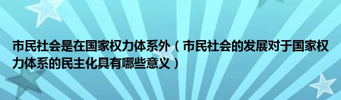 关于市民社会是在国家权力体系外,市民社会的发展对于国家权力体系的民主化具有哪些意义这个很多人还不知道,今天菲菲来为大家解答以上的问题,现在让我们一起来看看吧!