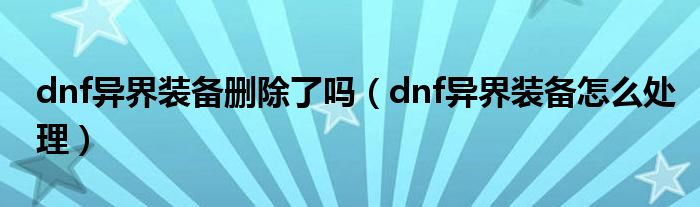 关于dnf异界装备删除了吗,dnf异界装备怎么处理这个很多人还不知道,今天菲菲来为大家解答以上的问题,现在让我们一起来看看吧!