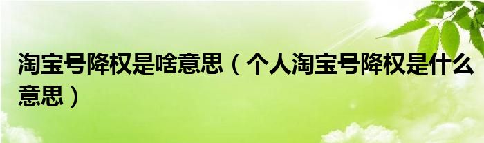 关于淘宝号降权是啥意思,个人淘宝号降权是什么意思这个很多人还不知道,今天菲菲来为大家解答以上的问题,现在让我们一起来看看吧!