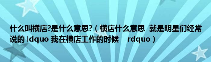 关于什么叫横店?是什么意思?,横店什么意思 就是明星们经常说的 ldquo 我在横店工作的时候 rdquo这个很多人还不知道,今天菲菲来为大家解答以上的问题,现在让我们一起来看看吧!
