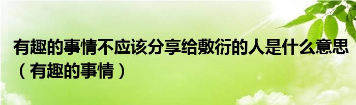 关于有趣的事情不应该分享给敷衍的人是什么意思,有趣的事情这个很多人还不知道,今天菲菲来为大家解答以上的问题,现在让我们一起来看看吧!