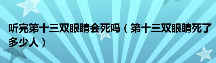 关于听完第十三双眼睛会死吗,第十三双眼睛死了多少人这个很多人还不知道,今天菲菲来为大家解答以上的问题,现在让我们一起来看看吧!