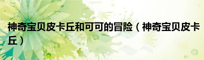 关于神奇宝贝皮卡丘和可可的冒险,神奇宝贝皮卡丘这个很多人还不知道,今天菲菲来为大家解答以上的问题,现在让我们一起来看看吧!