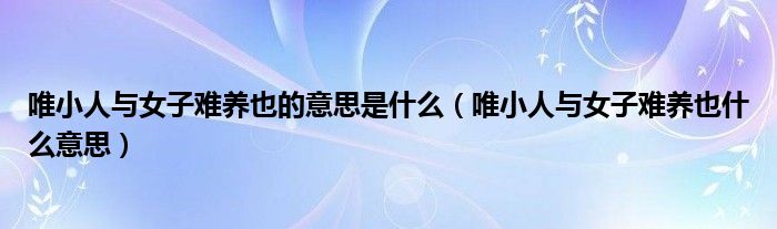 关于唯小人与女子难养也的意思是什么,唯小人与女子难养也什么意思这个很多人还不知道,今天菲菲来为大家解答以上的问题,现在让我们一起来看看吧!