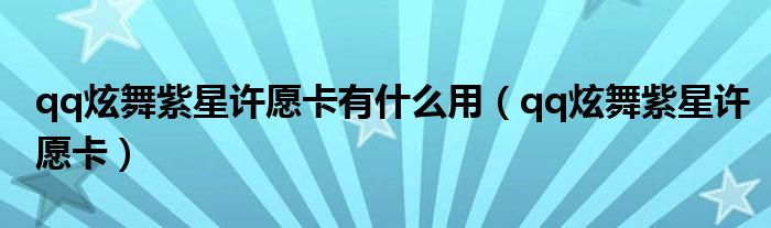 关于qq炫舞紫星许愿卡有什么用,qq炫舞紫星许愿卡这个很多人还不知道,今天菲菲来为大家解答以上的问题,现在让我们一起来看看吧!