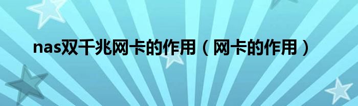关于nas双千兆网卡的作用,网卡的作用这个很多人还不知道,今天菲菲来为大家解答以上的问题,现在让我们一起来看看吧!