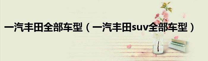 关于一汽丰田全部车型,一汽丰田suv全部车型这个很多人还不知道,今天菲菲来为大家解答以上的问题,现在让我们一起来看看吧!