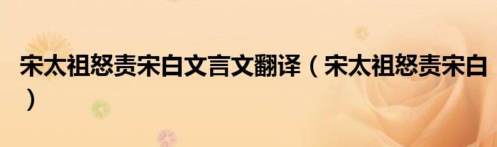关于宋太祖怒责宋白文言文翻译,宋太祖怒责宋白这个很多人还不知道,今天菲菲来为大家解答以上的问题,现在让我们一起来看看吧!