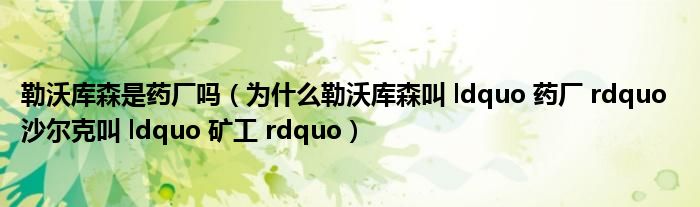 关于勒沃库森是药厂吗,为什么勒沃库森叫 ldquo 药厂 rdquo 沙尔克叫 ldquo 矿工 rdquo这个很多人还不知道,今天菲菲来为大家解答以上的问题,现在让我们一起来看看吧!