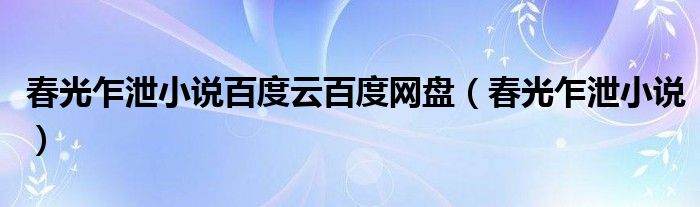 关于春光乍泄小说百度云百度网盘,春光乍泄小说这个很多人还不知道,今天菲菲来为大家解答以上的问题,现在让我们一起来看看吧!