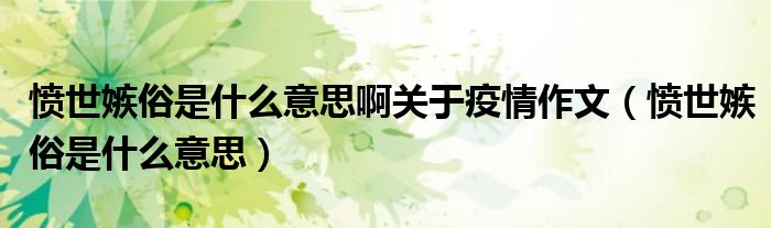 关于愤世嫉俗是什么意思啊关于疫情作文,愤世嫉俗是什么意思这个很多人还不知道,今天菲菲来为大家解答以上的问题,现在让我们一起来看看吧!