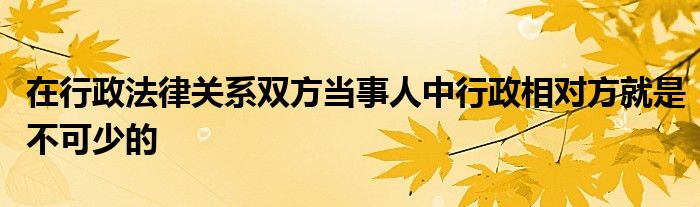 关于在行政法律关系双方当事人中行政相对方就是不可少的这个很多人还不知道,今天菲菲来为大家解答以上的问题,现在让我们一起来看看吧!