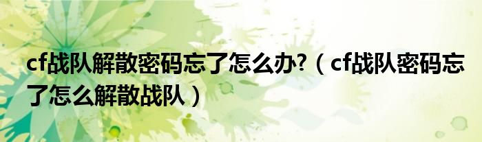 关于cf战队解散密码忘了怎么办?,cf战队密码忘了怎么解散战队这个很多人还不知道,今天菲菲来为大家解答以上的问题,现在让我们一起来看看吧!