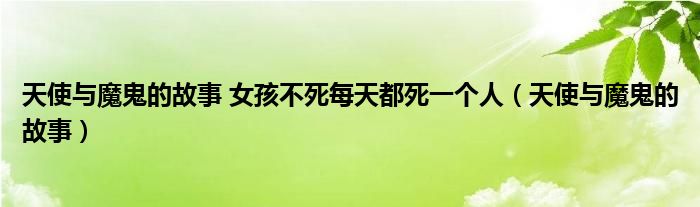 关于天使与魔鬼的故事 女孩不死每天都死一个人,天使与魔鬼的故事这个很多人还不知道,今天菲菲来为大家解答以上的问题,现在让我们一起来看看吧!
