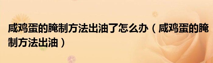 关于咸鸡蛋的腌制方法出油了怎么办,咸鸡蛋的腌制方法出油这个很多人还不知道,今天菲菲来为大家解答以上的问题,现在让我们一起来看看吧!