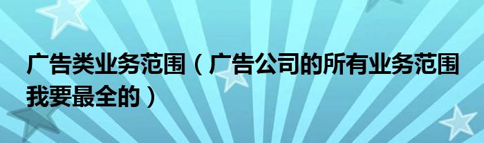 关于广告类业务范围,广告公司的所有业务范围 我要最全的这个很多人还不知道,今天菲菲来为大家解答以上的问题,现在让我们一起来看看吧!