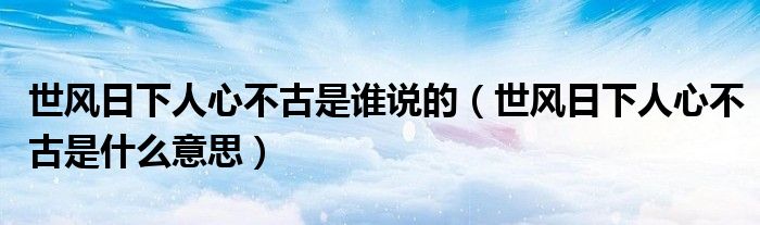 关于世风日下人心不古是谁说的,世风日下人心不古是什么意思这个很多人还不知道,今天菲菲来为大家解答以上的问题,现在让我们一起来看看吧!