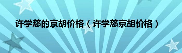 关于许学慈的京胡价格,许学慈京胡价格这个很多人还不知道,今天菲菲来为大家解答以上的问题,现在让我们一起来看看吧!