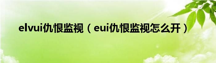 elvui仇恨监视(eui仇恨监视怎么开)