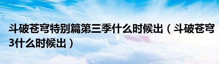 斗破苍穹特别篇第三季什么时候出(斗破苍穹3什么时候出)
