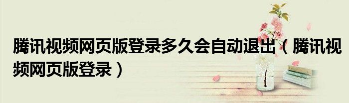 大家好,小晋来为大家解答以下问题,关于腾讯视频网页版登录多久会自动退出,腾讯视频网页版登录很多人还不知道,今天让我们一起来看看吧!
