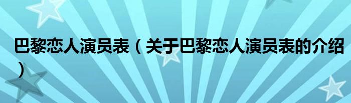 巴黎恋人演员表(关于巴黎恋人演员表的介绍)