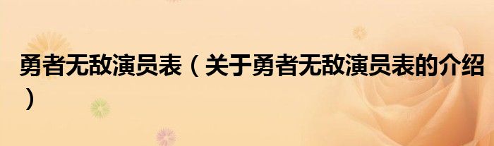 勇者无敌演员表(关于勇者无敌演员表的介绍)