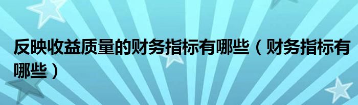 关于反映收益质量的财务指标有哪些,财务指标有哪些这个很多人还不知道,今天菲菲来为大家解答以上的问题,现在让我们一起来看看吧!
