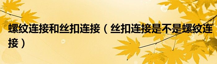 关于螺纹连接和丝扣连接,丝扣连接是不是螺纹连接这个很多人还不知道,今天菲菲来为大家解答以上的问题,现在让我们一起来看看吧!