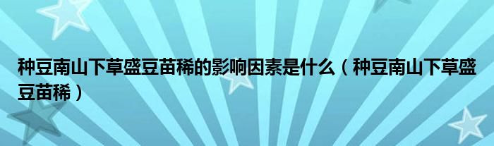关于种豆南山下草盛豆苗稀的影响因素是什么,种豆南山下草盛豆苗稀这个很多人还不知道,今天菲菲来为大家解答以上的问题,现在让我们一起来看看吧!