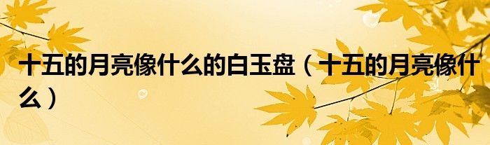 关于十五的月亮像什么的白玉盘,十五的月亮像什么这个很多人还不知道,今天菲菲来为大家解答以上的问题,现在让我们一起来看看吧!