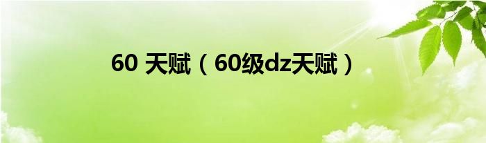 关于60 天赋,60级dz天赋这个很多人还不知道,今天菲菲来为大家解答以上的问题,现在让我们一起来看看吧!