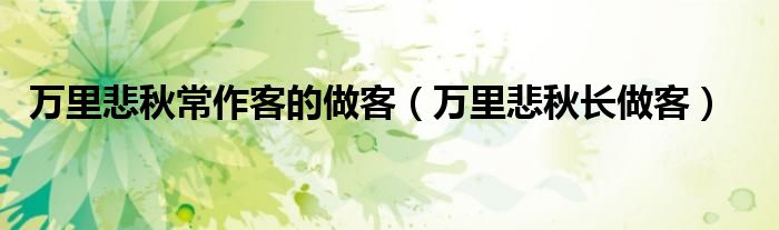 关于万里悲秋常作客的做客,万里悲秋长做客这个很多人还不知道,今天菲菲来为大家解答以上的问题,现在让我们一起来看看吧!