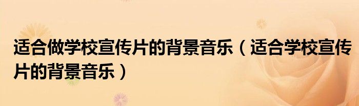 关于适合做学校宣传片的背景音乐,适合学校宣传片的背景音乐这个很多人还不知道,今天菲菲来为大家解答以上的问题,现在让我们一起来看看吧!
