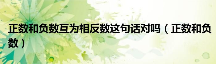 关于正数和负数互为相反数这句话对吗,正数和负数这个很多人还不知道,今天菲菲来为大家解答以上的问题,现在让我们一起来看看吧!