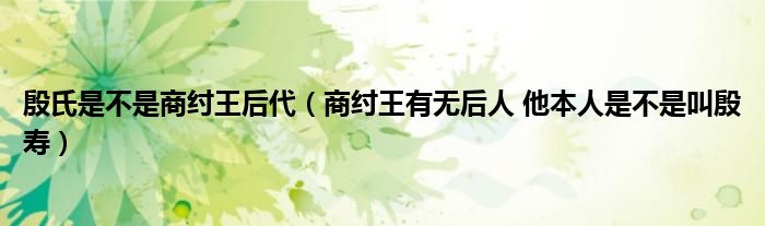 关于殷氏是不是商纣王后代,商纣王有无后人 他本人是不是叫殷寿这个很多人还不知道,今天菲菲来为大家解答以上的问题,现在让我们一起来看看吧!
