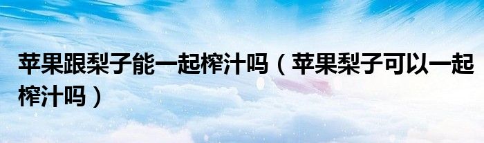 大家好,小晋来为大家解答以下问题,关于苹果跟梨子能一起榨汁吗,苹果梨子可以一起榨汁吗很多人还不知道,今天让我们一起来看看吧!