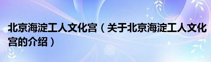 大家好,今天小乐来为大家解答以上的问题。北京海淀工人文化宫,关于北京海淀工人文化宫的介绍很多人还不知道,现在让我们一起来看看吧!