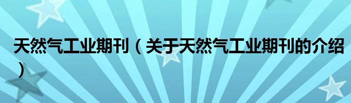 大家好,今天小乐来为大家解答以上的问题。天然气工业期刊,关于天然气工业期刊的介绍很多人还不知道,现在让我们一起来看看吧!