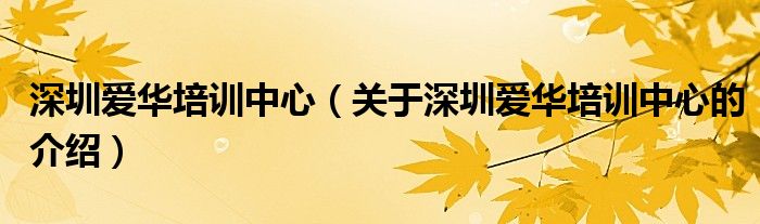1、深圳爱华人才培训中心创建于1982年,是深圳最早经政府部门批准的大型综合性办学机构。