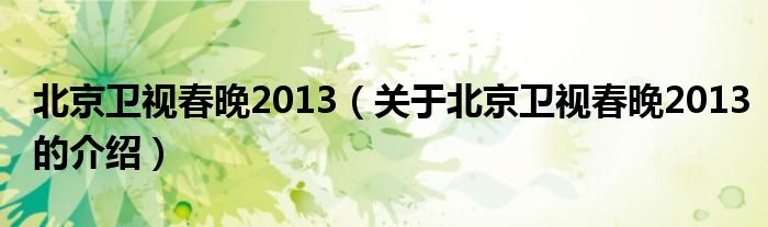 大家好,今天小乐来为大家解答以上的问题。北京卫视春晚2013,关于北京卫视春晚2013的介绍很多人还不知道,现在让我们一起来看看吧!